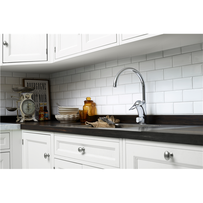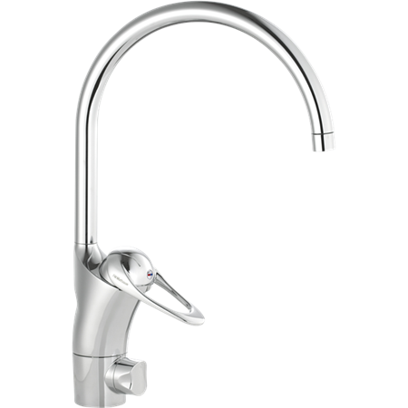 9000E Köksblandare med kallstartsfunktion och mjukstängning. Inbyggd omställningsbar flödesbegränsning och temperaturspärr. Strålsamlare med Eco Flow. Med anslutning slät ände Ø10 mm. Tillverkade i 4MS godkänd mässingslegering. Produkten finns bedömd hos Sunda Hus och Byggvarubedömningen. Energiklass C. Krom. Köket är den del av hemmet där allt händer. Det är här det lagas, bakas och fejas – varje dag. Då är det viktigt att verktygen håller. Det gäller inte minst kökskranen som ska bekänna färg i många tuffa år. FM Mattsson 9000E gör vad den ska effektivt, gång efter gång utan onödigt slöseri av varmvatten.