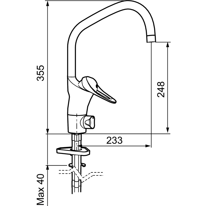- Hög, svängbar pip. Spärrbricka medföljer för 60°, 85°, 110° eller 360°.