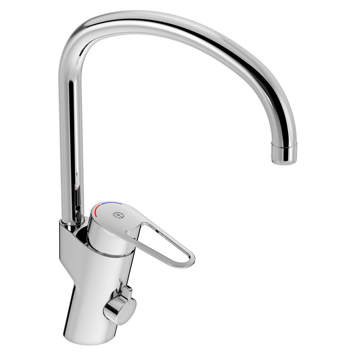 Hög design som underlättar rengöring av större kastruller och grytor Greppvänlig spak med tydlig färgmarkering för varm- och kallvatten Soft move, keramiskt paket med mjuk och precis manövrering Eco-flow, för vatten- och energieffektivisering Eco-stopp, justerbar maxflödesbegränsning Svängbar utloppspip 110° (spärr för 0° och 60° ingår) Anslutning för bänkdiskmaskin på baksidan Keramisk tätning för droppsäkring och lång livslängd Smart inside, hållbar konstruktion för framtidens krav Energiklass C Justerbar maxtemperatur för ökat skållningsskydd Alla komponenter i livsmedelsgodkända material Mässing av DZR kvalitet Snabbmonteringsmutter för enkelt montage Typgodkänd flexibel vattenanslutning för enklare montage Återströmningsskydd enligt SS-EN 1717 [AA] Kan funktionsanpassas med olika alternativa spakar Design Propeller AB