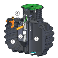 BAGA BioFicient 1- Komplett minireningsverk för 5PE/1 hushåll. Allt i en tank för enkel installation. Flödesproportionell dosering. IoT uppkoppling.